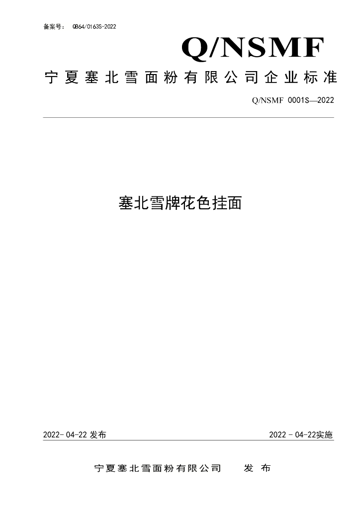Q/NSMF 0001S-2022 塞北雪牌花色挂面