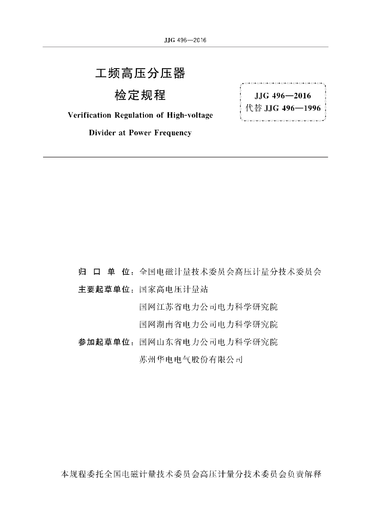 国家高电压计量站、国网江苏省电力公司电力科学研究院、国网湖南省电力公司电力科学研究院、国网山东省电力公司电力科学研究院、苏州华电电气股份有限公司
