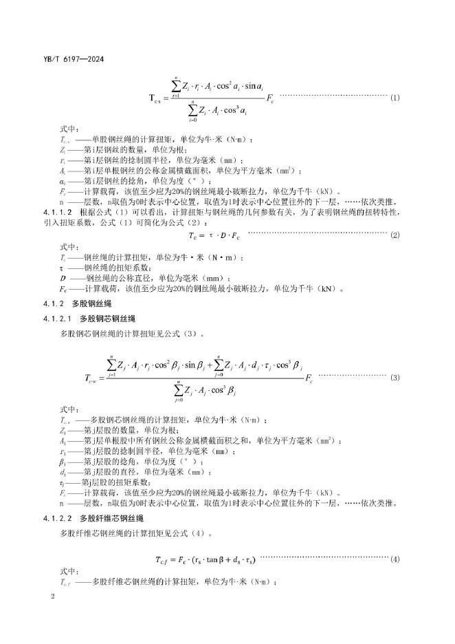 YB/T 6197-2024 钢丝绳 扭矩计算方法