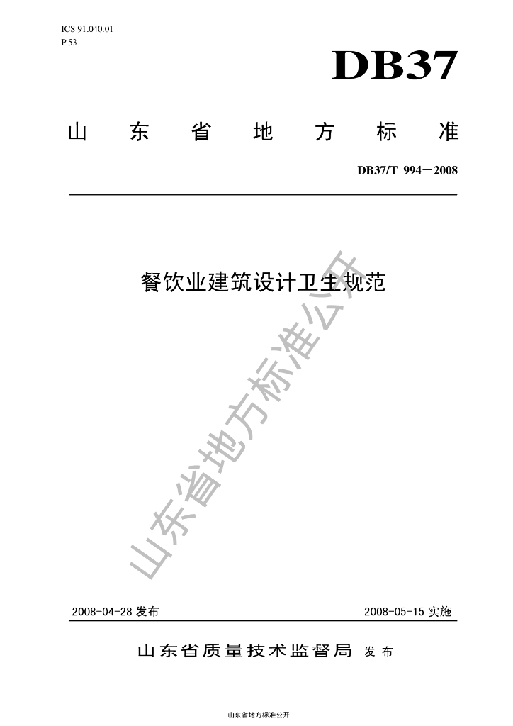 DB37/T 994-2008 餐饮业建筑设计卫生规范