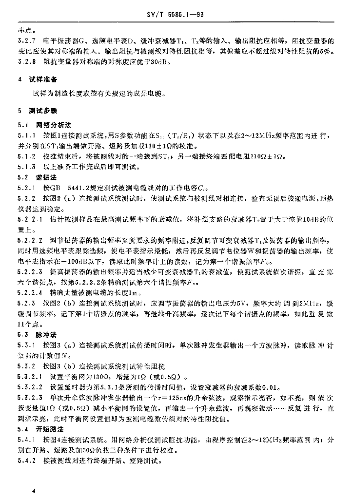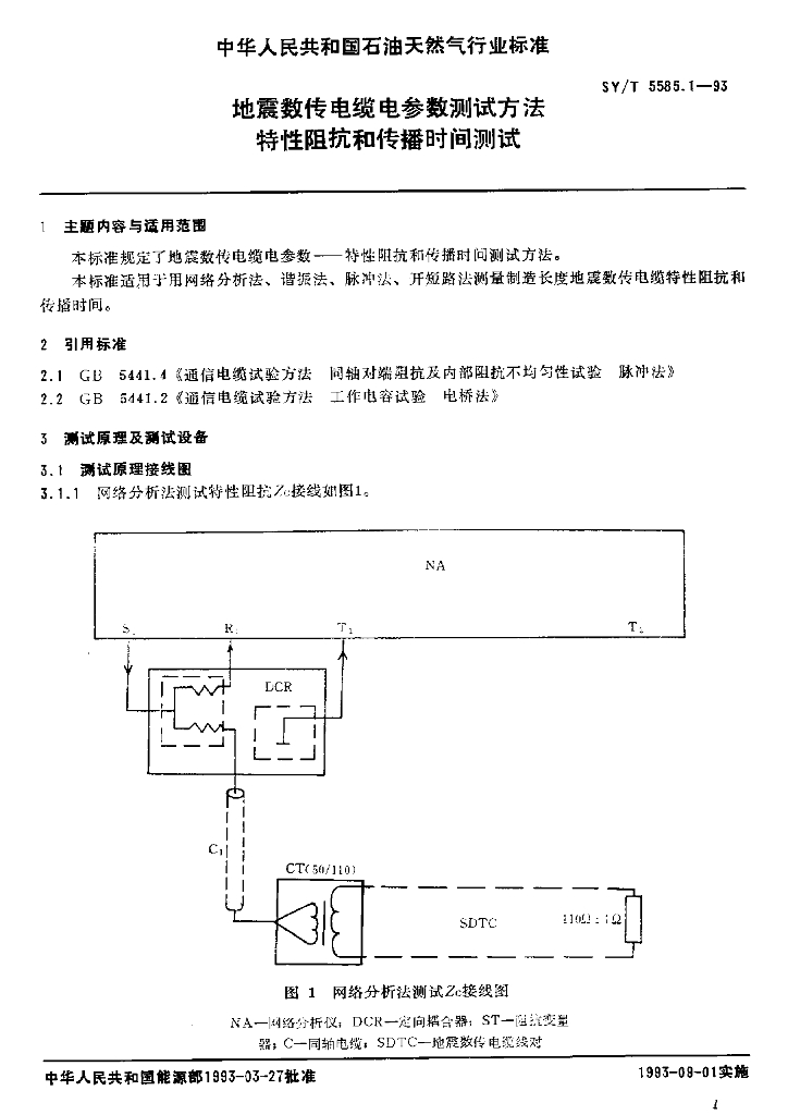 SY/T 5585.1-1993 地震数传电缆电参数测试方法特性阻抗和传播时间测试
