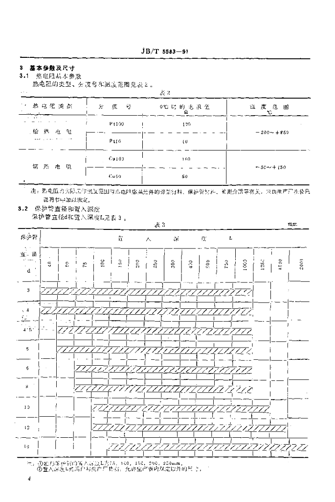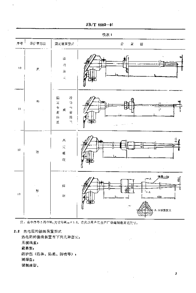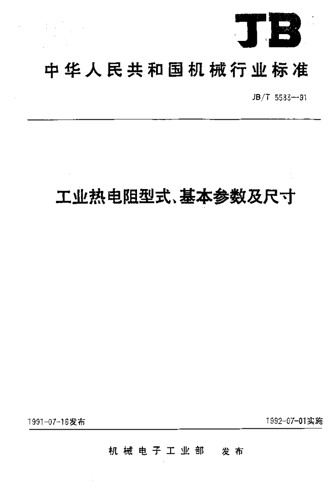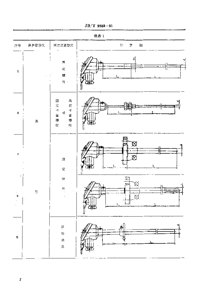 JB/T 5583-1991 工业热电阻 型式基本参数及尺寸