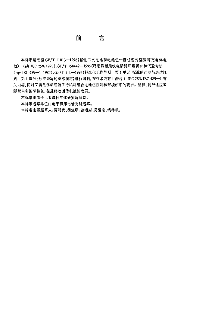 SJ/T 11195-1998 移动通信手持机电池(镉镍电池)规范
