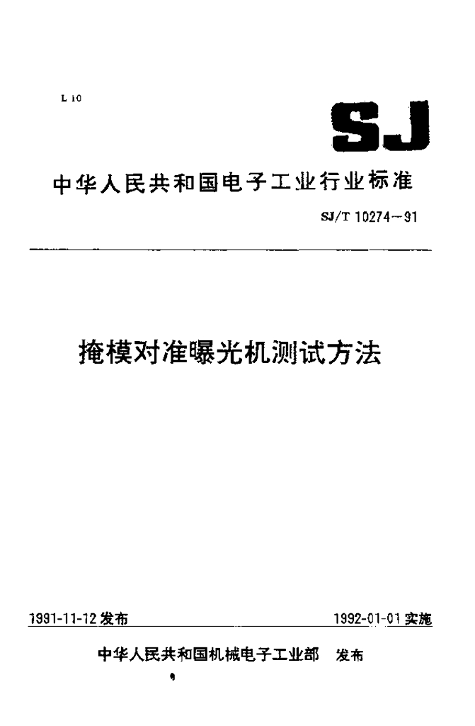 SJ/T 10274-1991 掩模对准曝光机测试方法