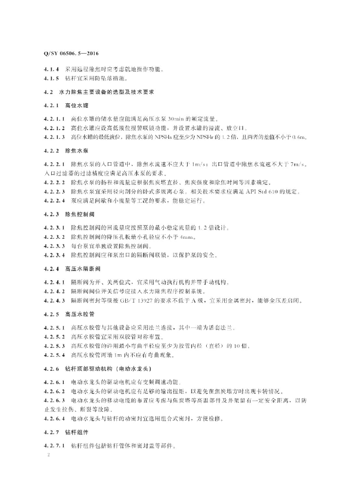 Q/SY 06506.5-2016 炼油化工工程转动设备技术规范 第5部分:焦化装置水力除焦系统