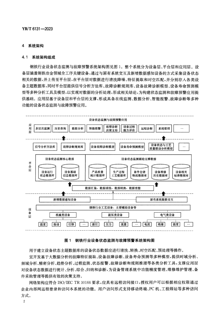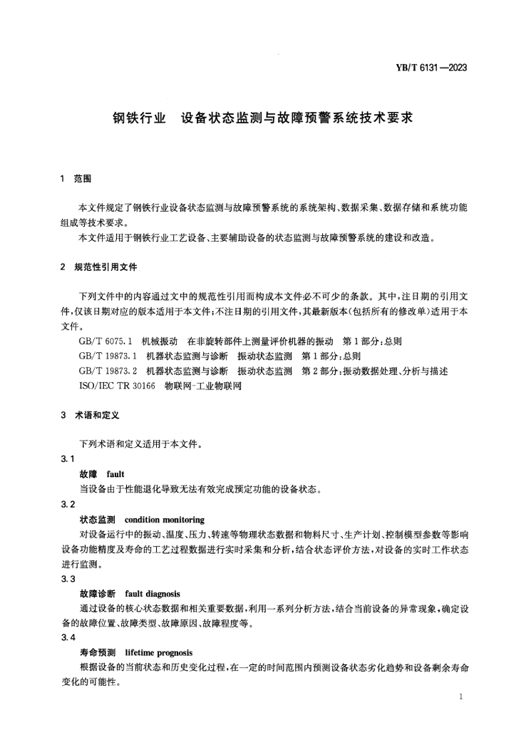 YB/T 6131-2023 钢铁行业 设备状态监测与故障预警系统技术要求