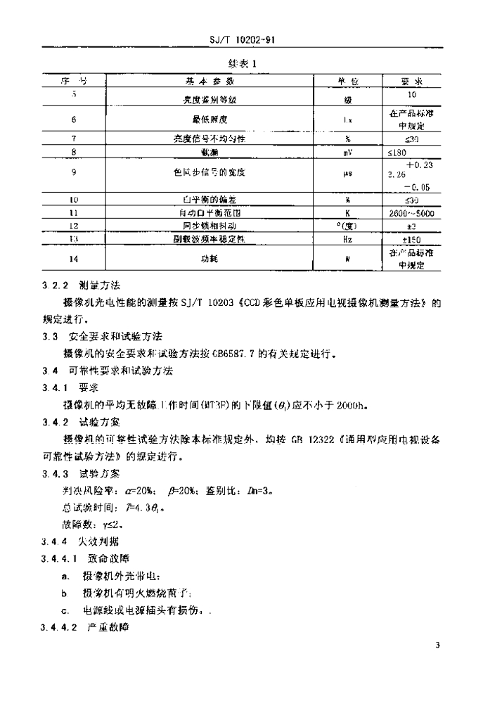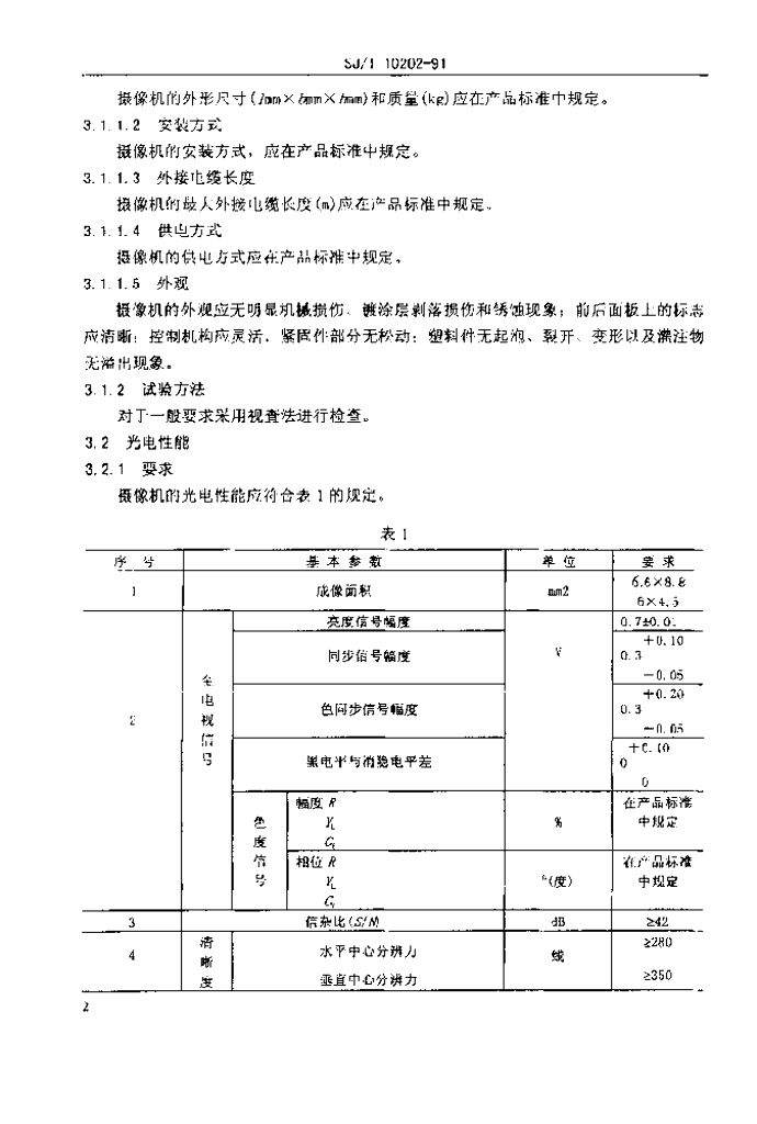 SJ/T 10202-1991 CCD彩色单板应用电视摄像机总技术条件