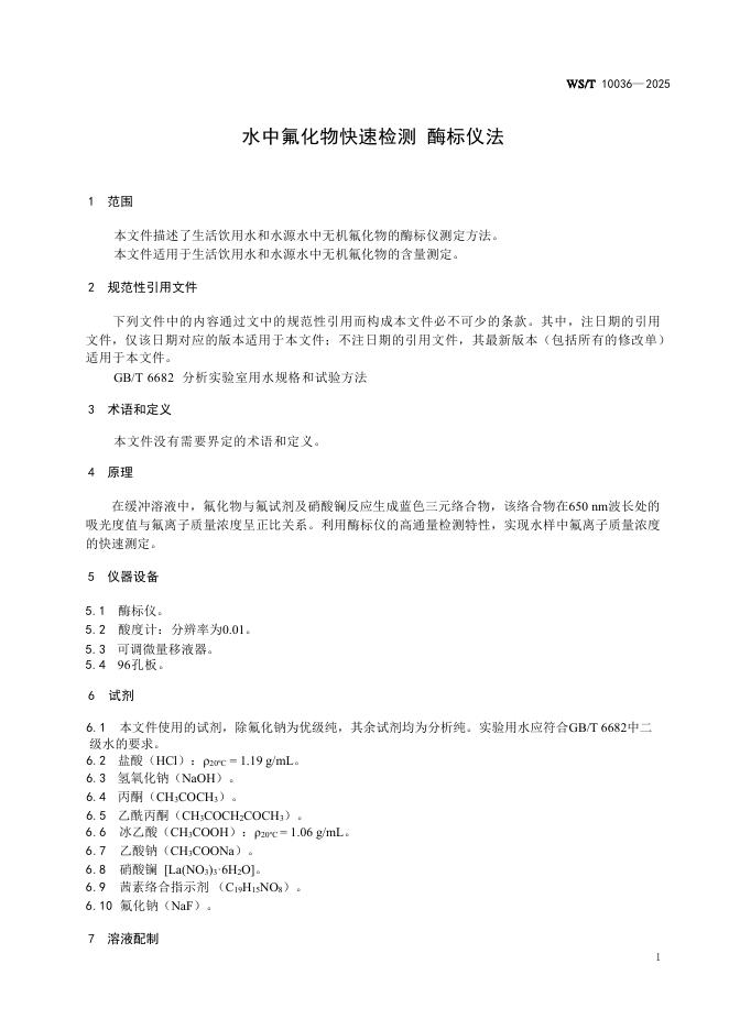 WS/T 10036-2025 水中氟化物快速检测 酶标仪法