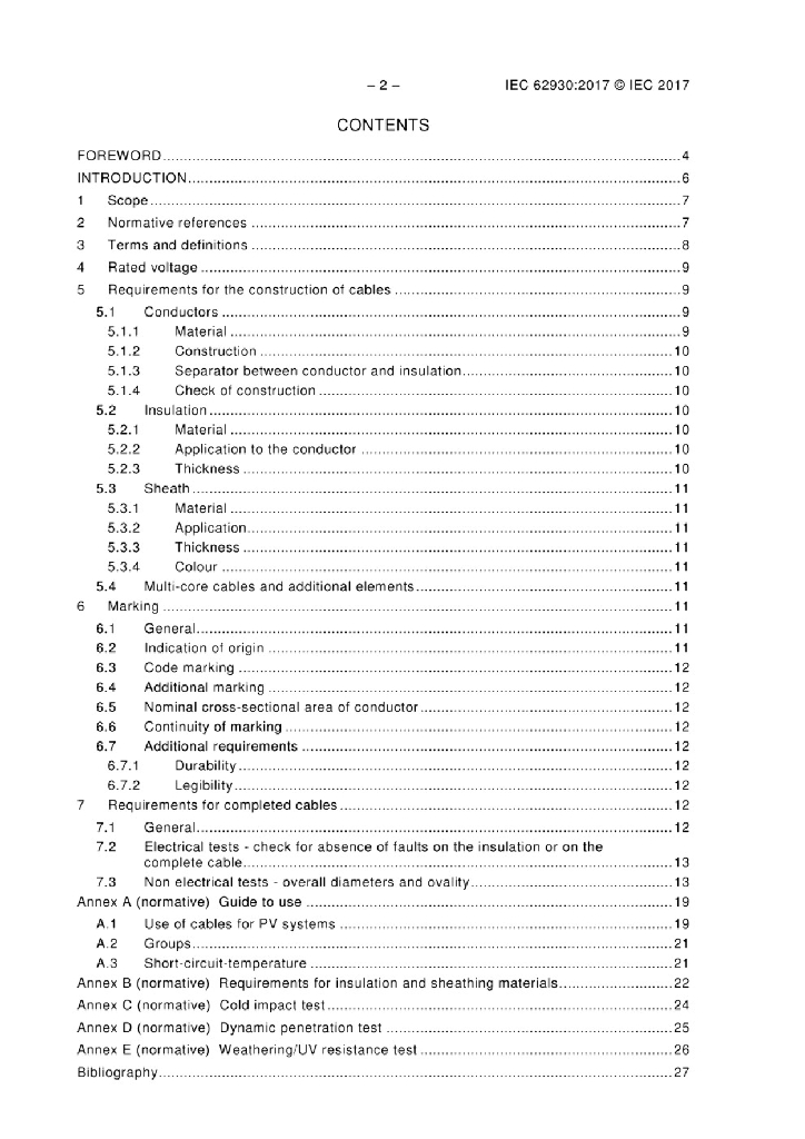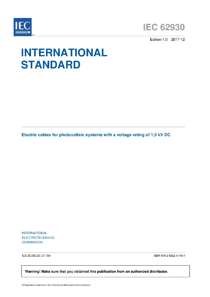 IEC 62930:2017 光伏系统用额定电压1.5kV直流电缆