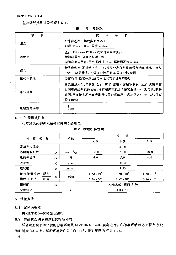 BB/T 0026-2004 夹筋包装袋纸