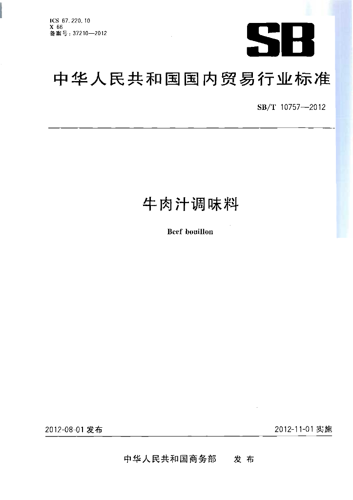 SB/T 10757-2012 牛肉汁调味料