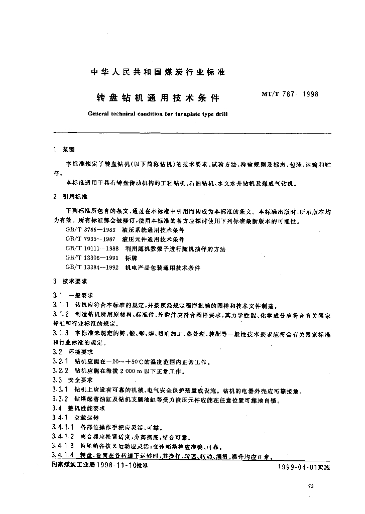 MT/T 787-1998 转盘钻机通用技术条件