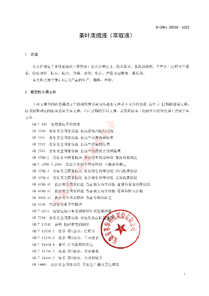 Q/CHKJ 0005S-2022 茶叶浓缩液(萃取液)