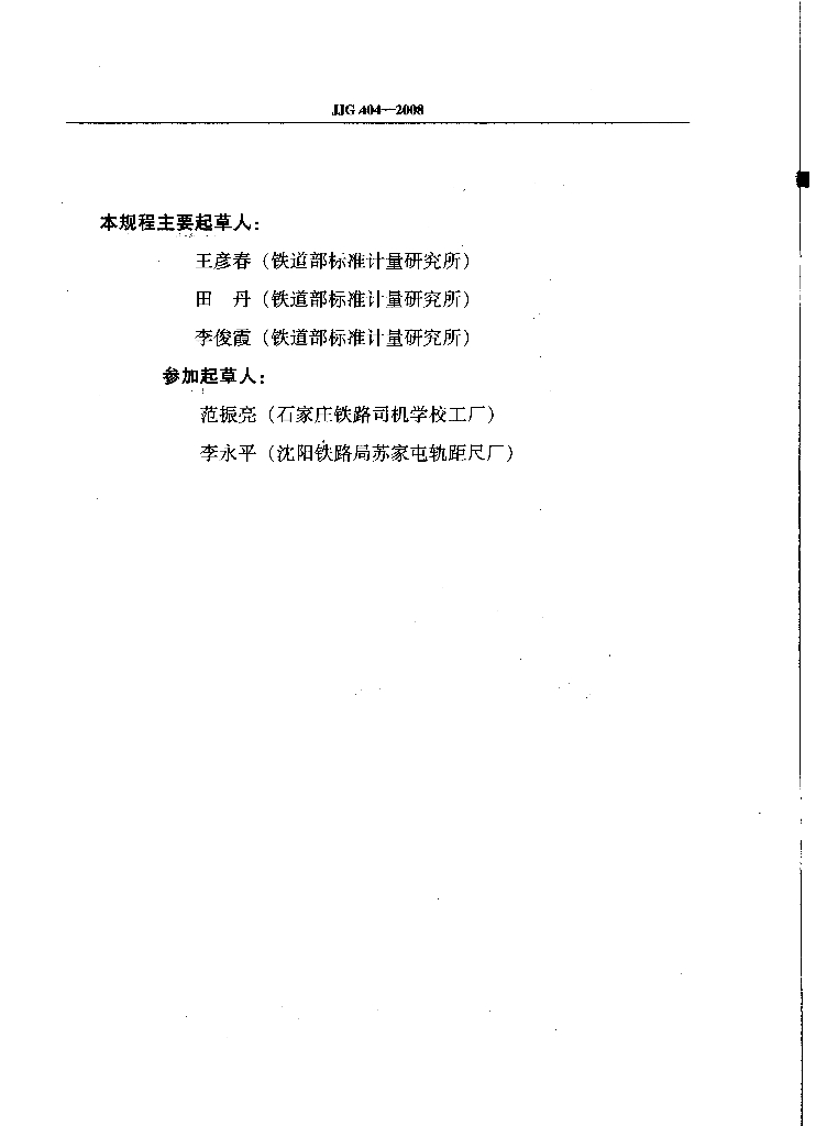 王彦春(铁道部标准计量研究所)、田丹(铁道部标准计量研究所)、李俊霞(铁道部标准计量研究所)、范振亮(石家庄铁路司机学校工厂)、李永平(沈阳铁路局苏家屯轨距尺厂)