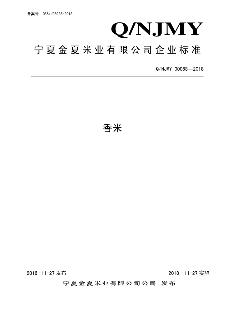Q/NJMY 0006S-2018 香米