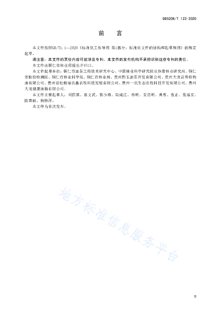 铜仁市油茶工程技术研究中心、中国林业科学研究院亚热带林业研究所、铜仁市检验检测院、铜仁市林业科学院、铜仁市林业局、贵州黔玉油茶开发有限公司、贵州大龙益寿植物油有限公司、贵州省松桃福农鑫农牧科技发展有限公司、贵州一航生态农牧科技开发有限公司、贵州大龙健康油脂有限公司。
