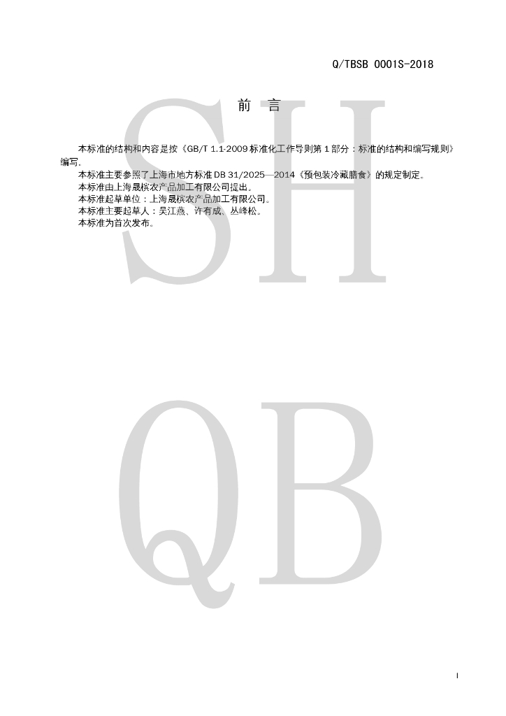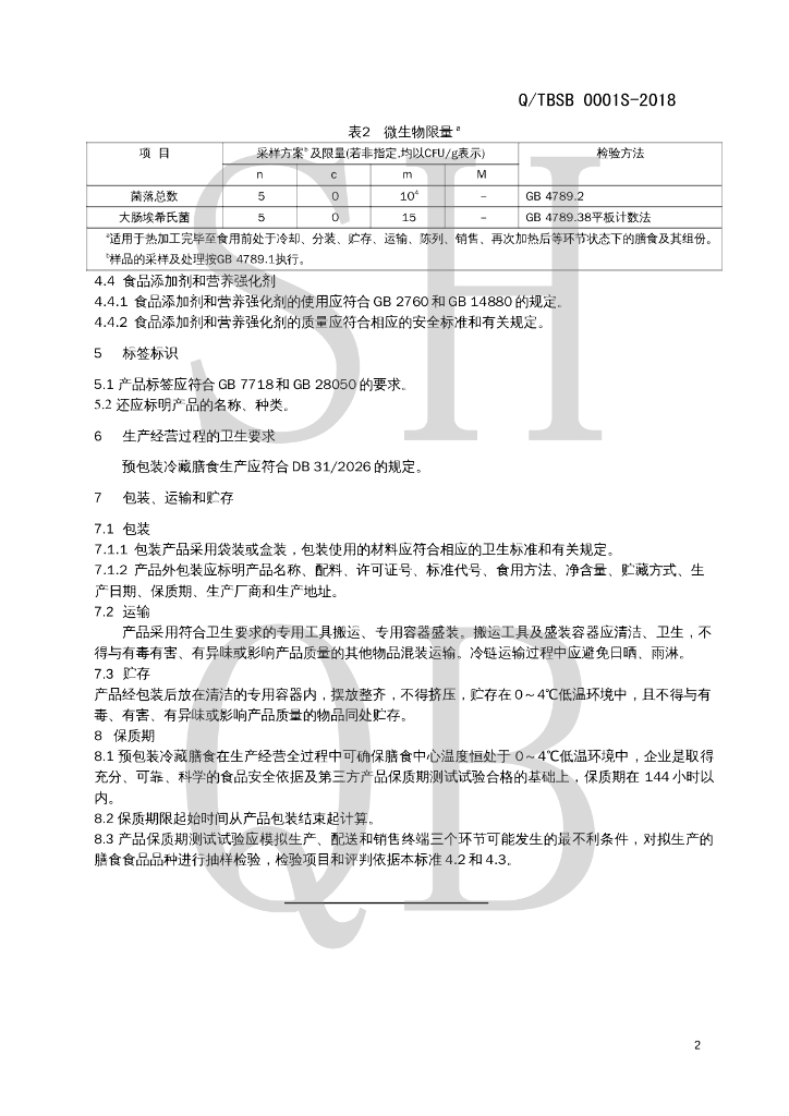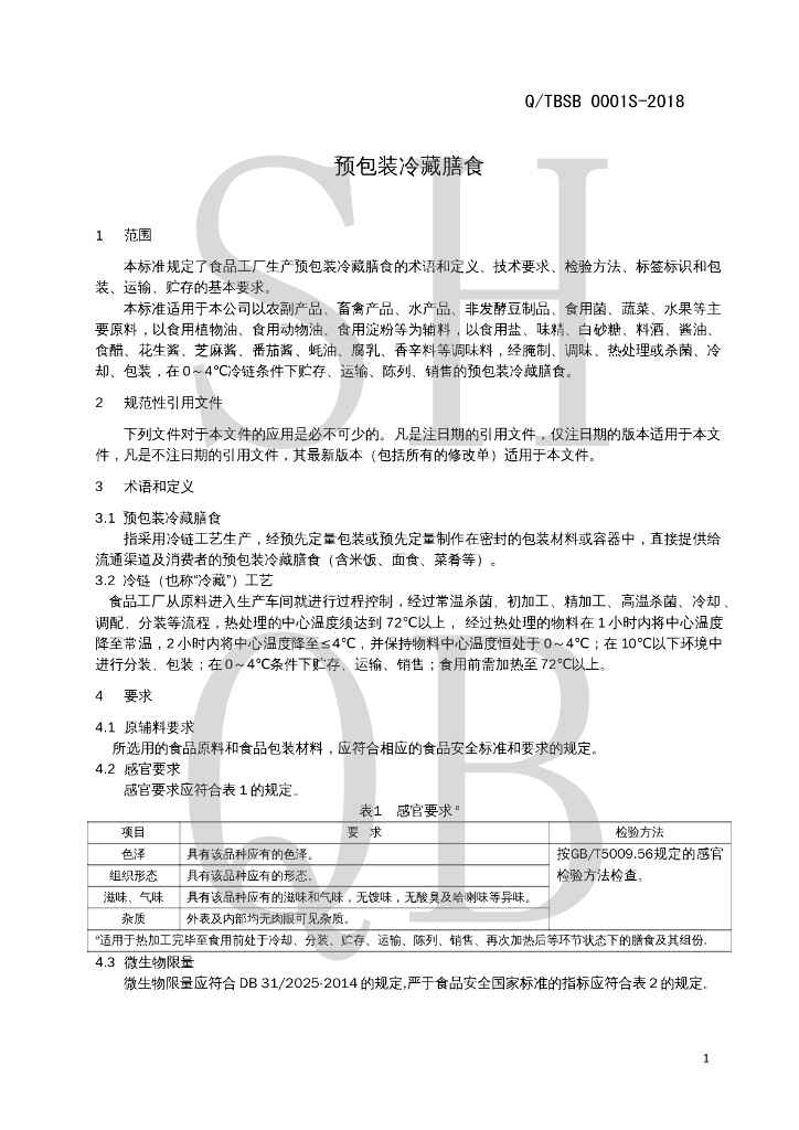 Q/TBSB 0001S-2018 预包装冷藏膳食