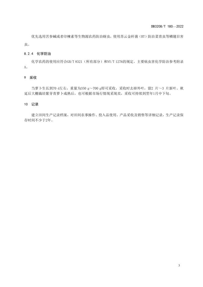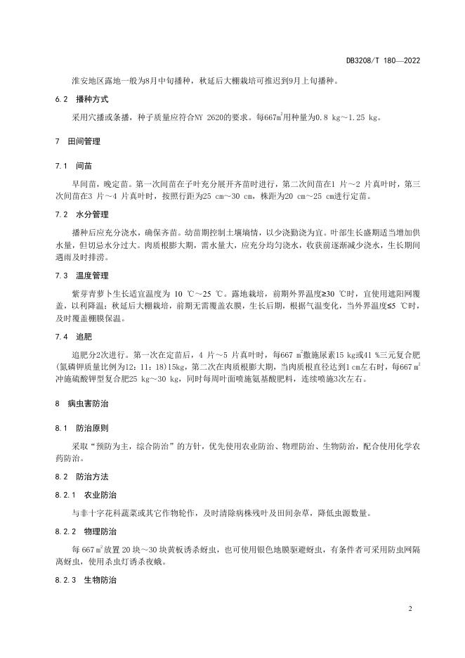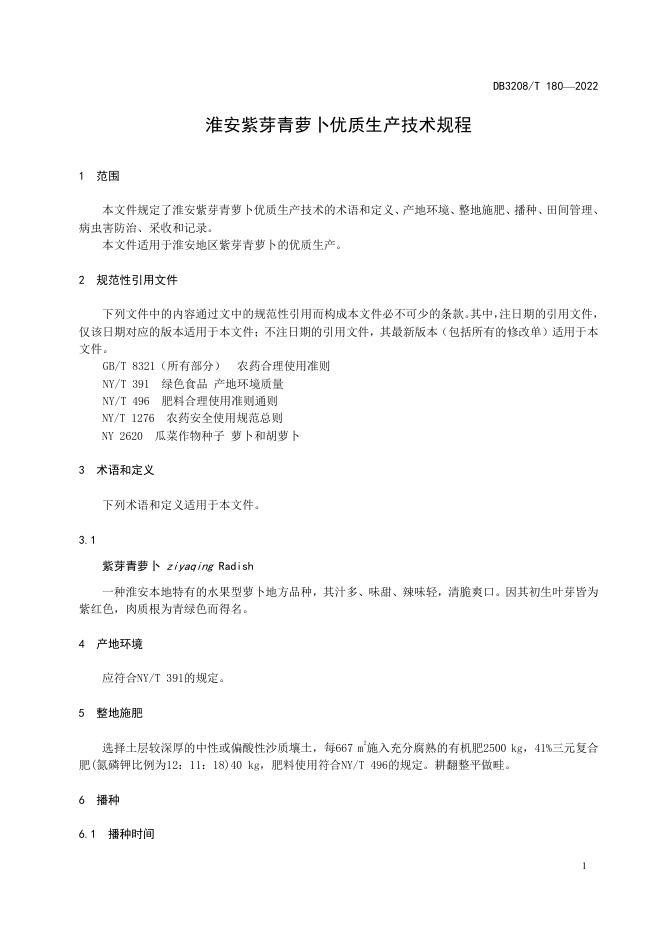 DB3208/T 180-2022 淮安紫芽青萝卜优质生产技术规程