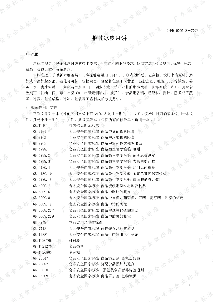 Q/FM 0004S-2022 榴莲冰皮月饼