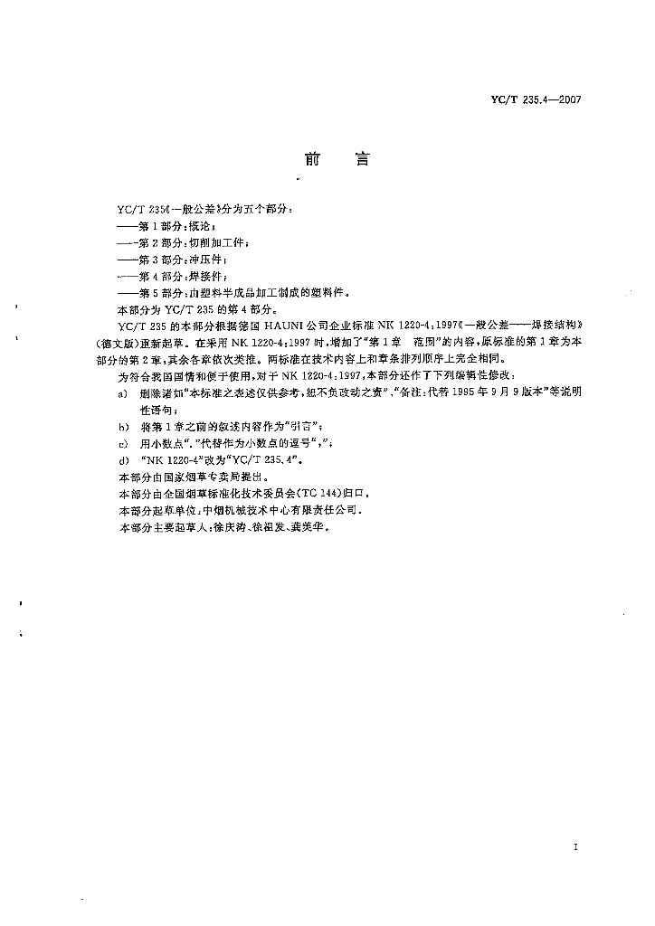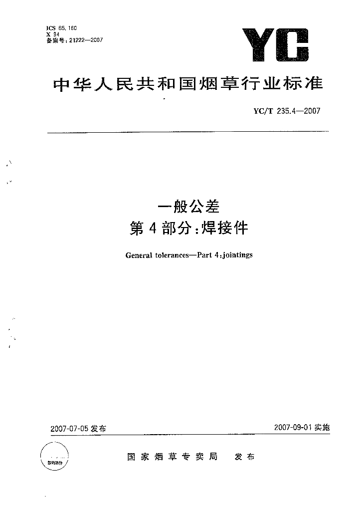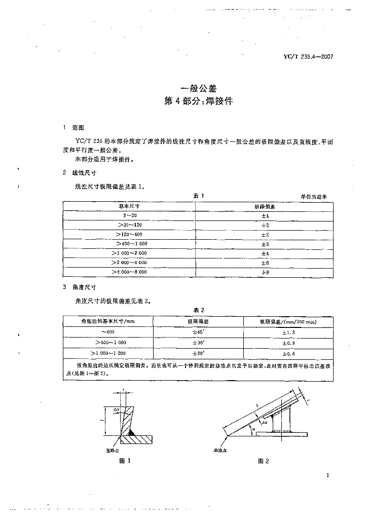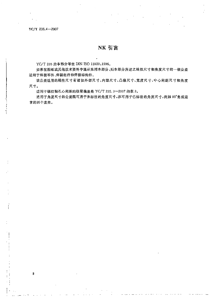 YC/T 235.4-2007 一般公差 第4部分:焊接件