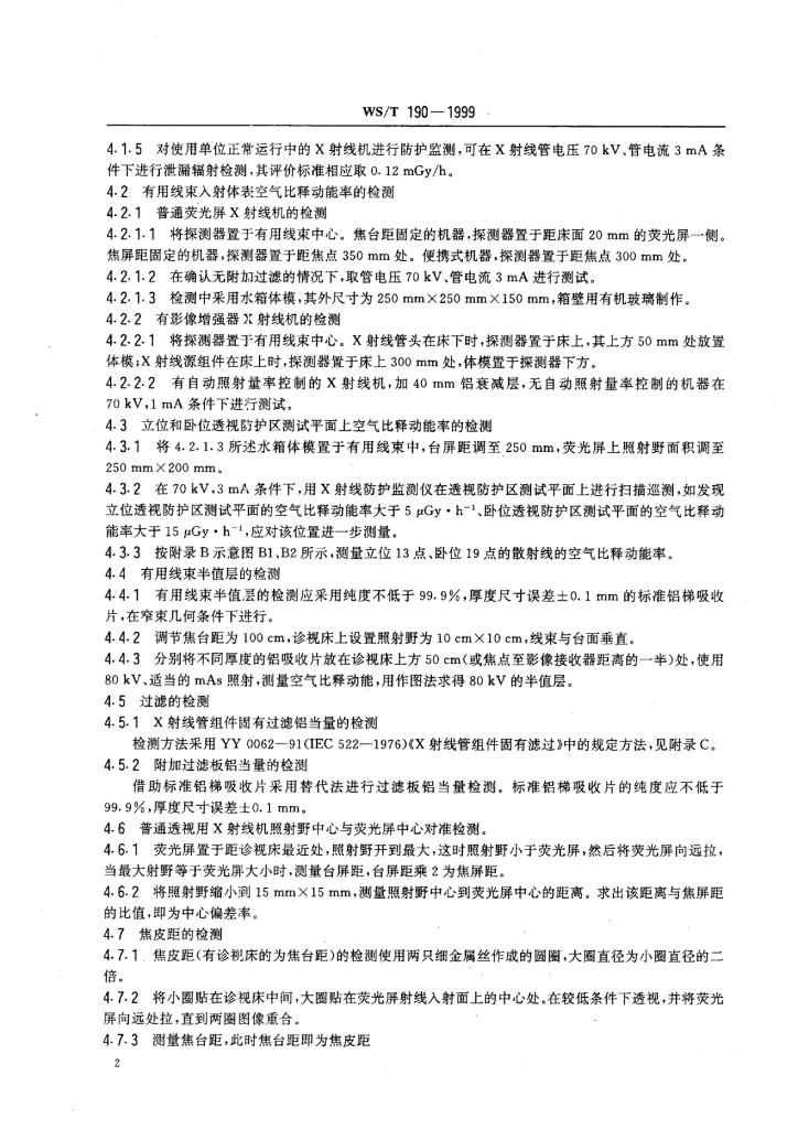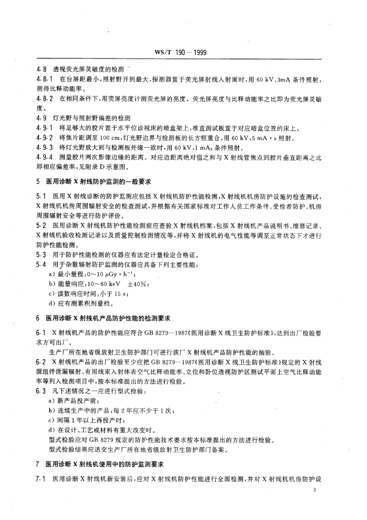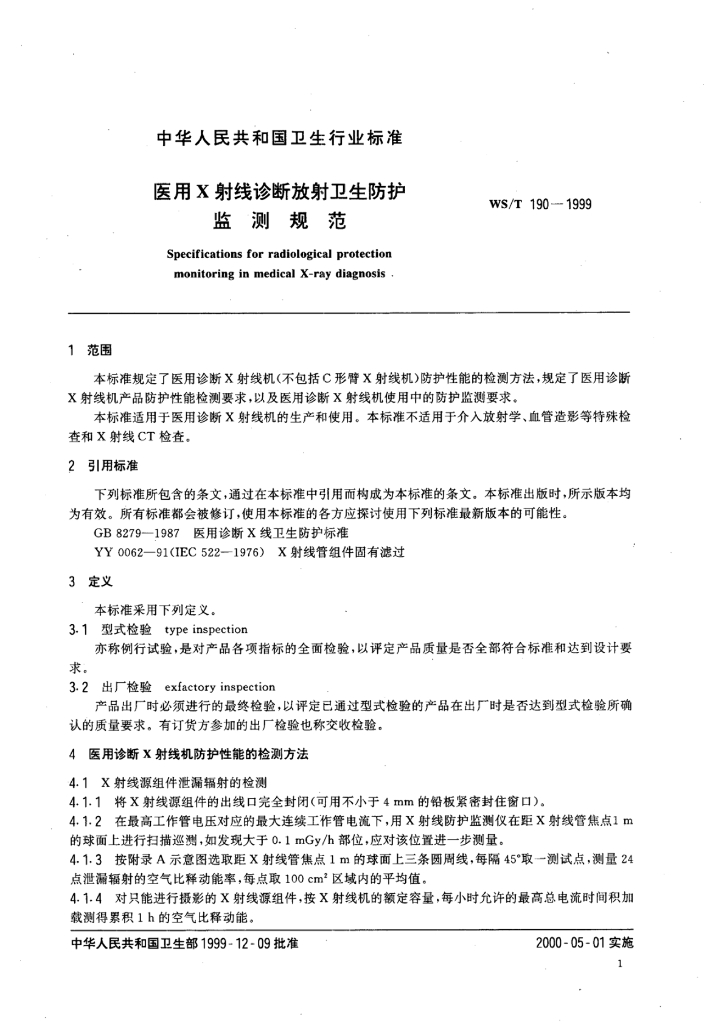 WS/T 190-1999 医用X射线诊断放射卫生防护监测规范
