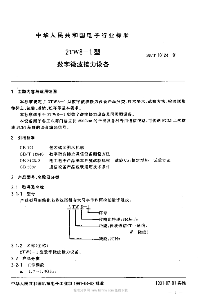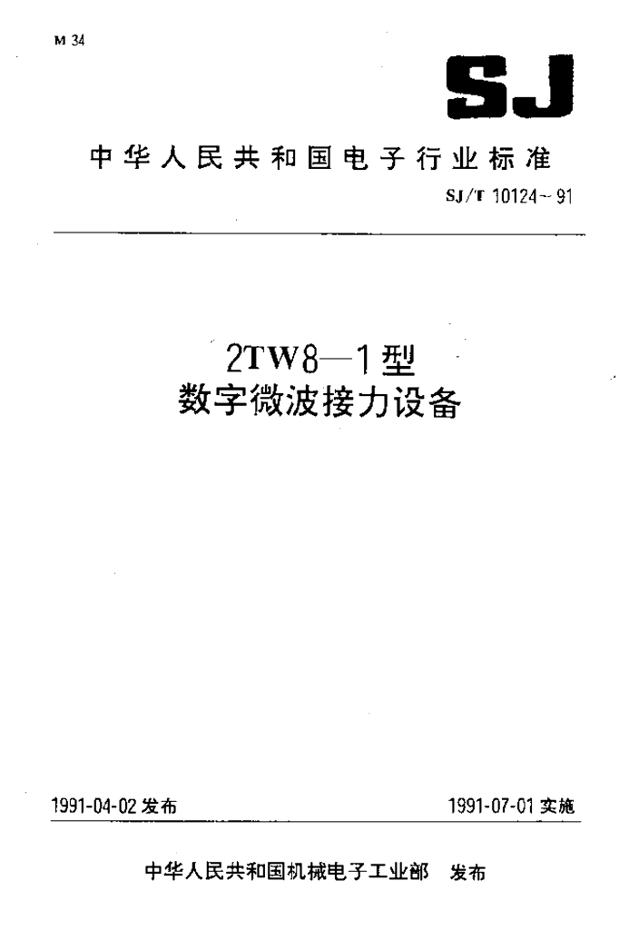 SJ/T 10124-1991 2TW8一1型数字微波接力设备