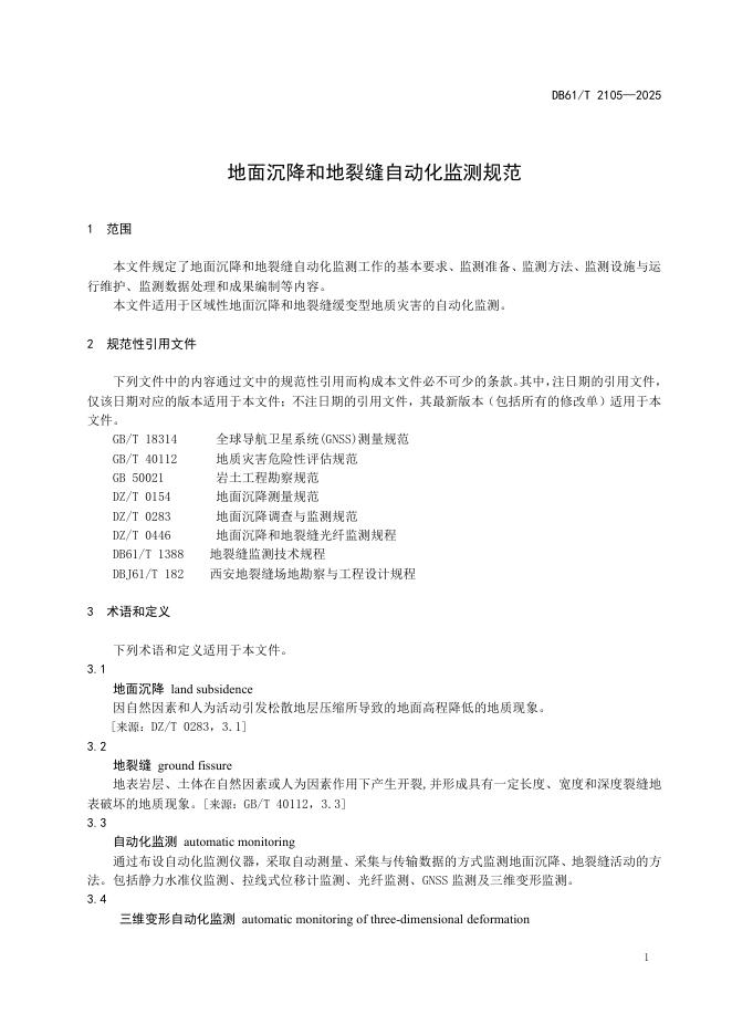 DB61/T 2105-2025 地面沉降和地裂缝自动化监测规范