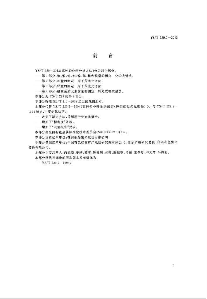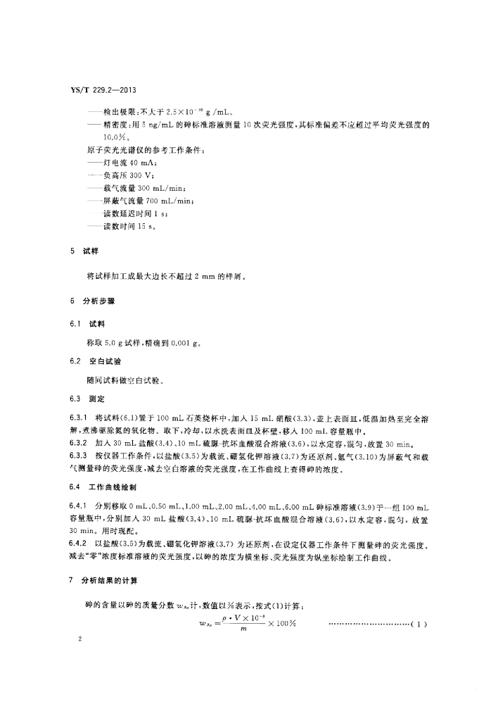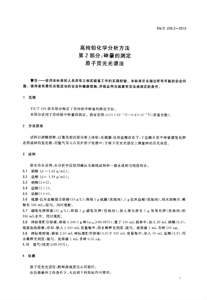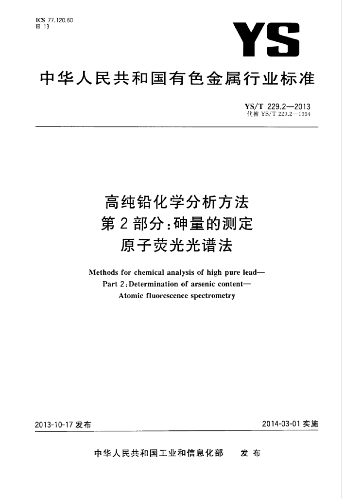 YS/T 229.2-2013 高纯铅化学分析方法 第2部分:砷量的测定原子荧光光谱法