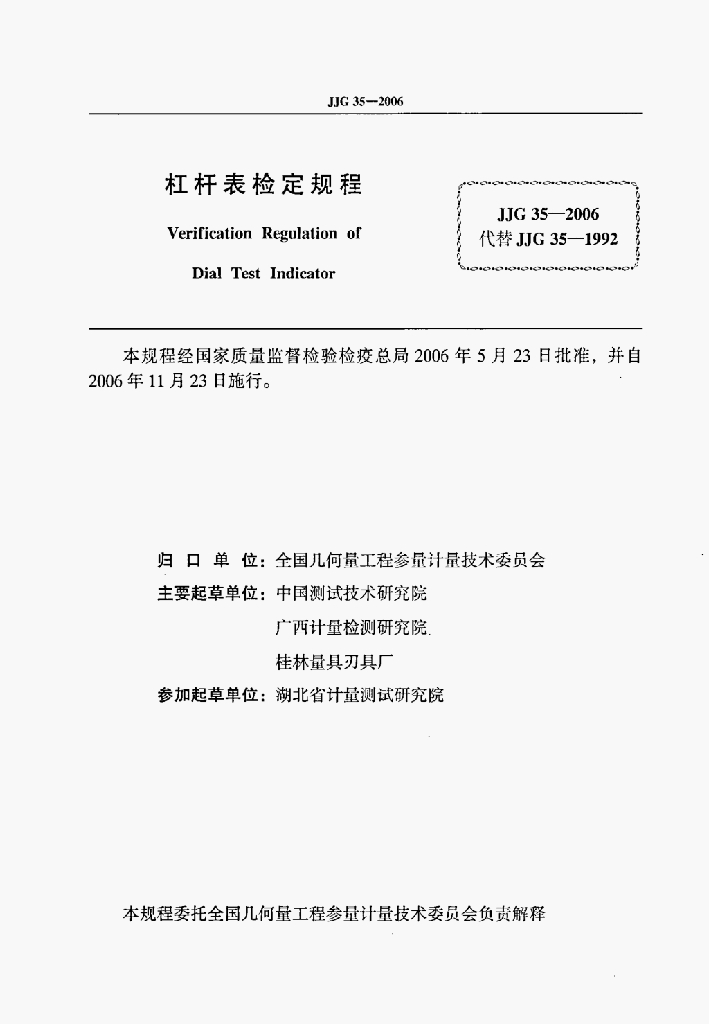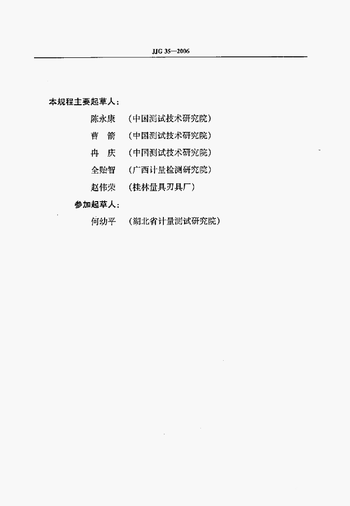 陈永康(中国测试技术研究院)、曹箭(中国测试技术研究院)、冉庆(中国测试技术研究院)、全贻智(广西计量检测研究院)、赵伟荣(桂林量具刃具厂)、何幼平(湖北省计量测试研究院)