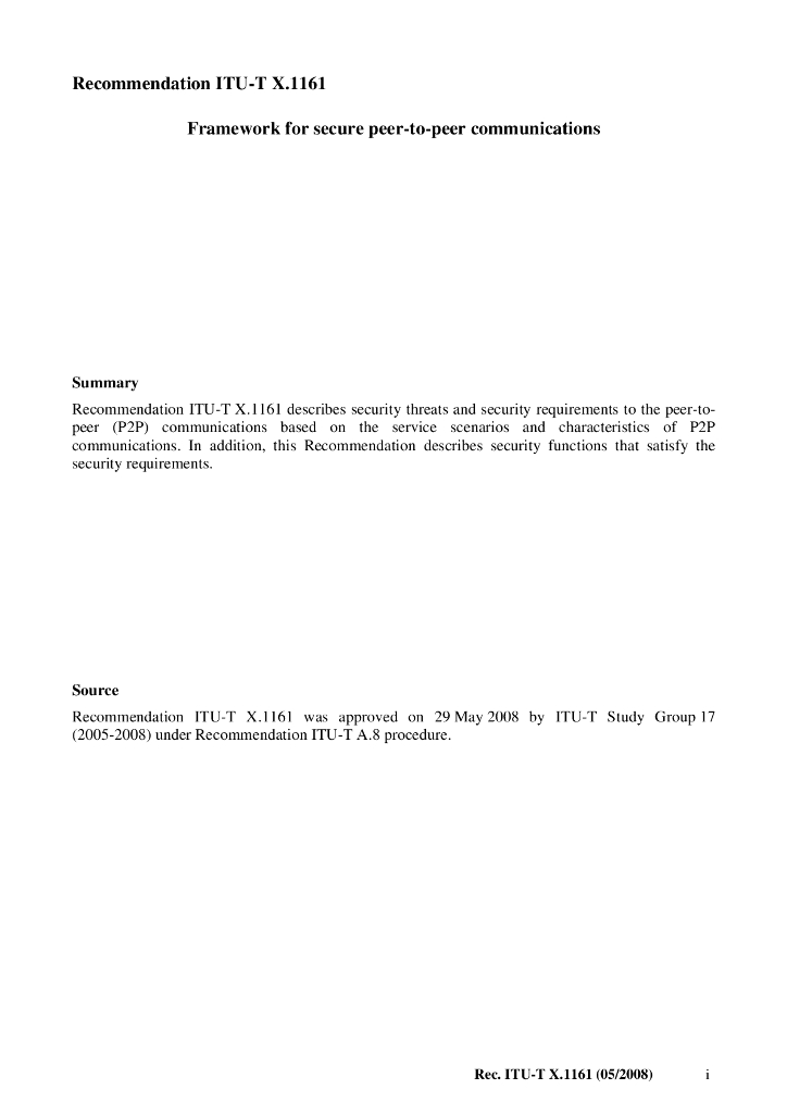 ITU-T X.1161-2008 安全点到点通信的框架