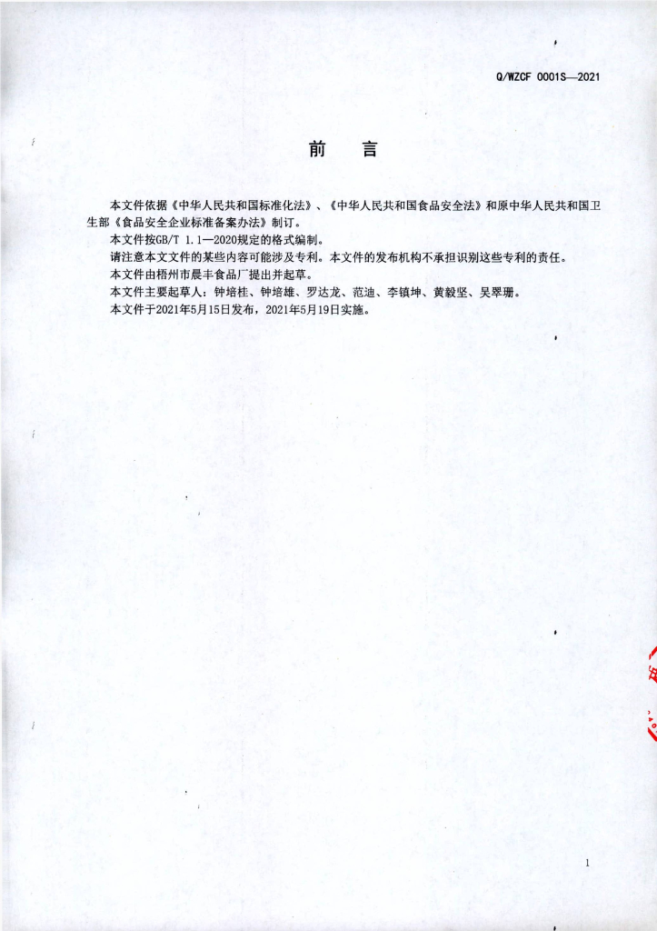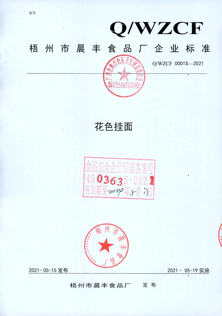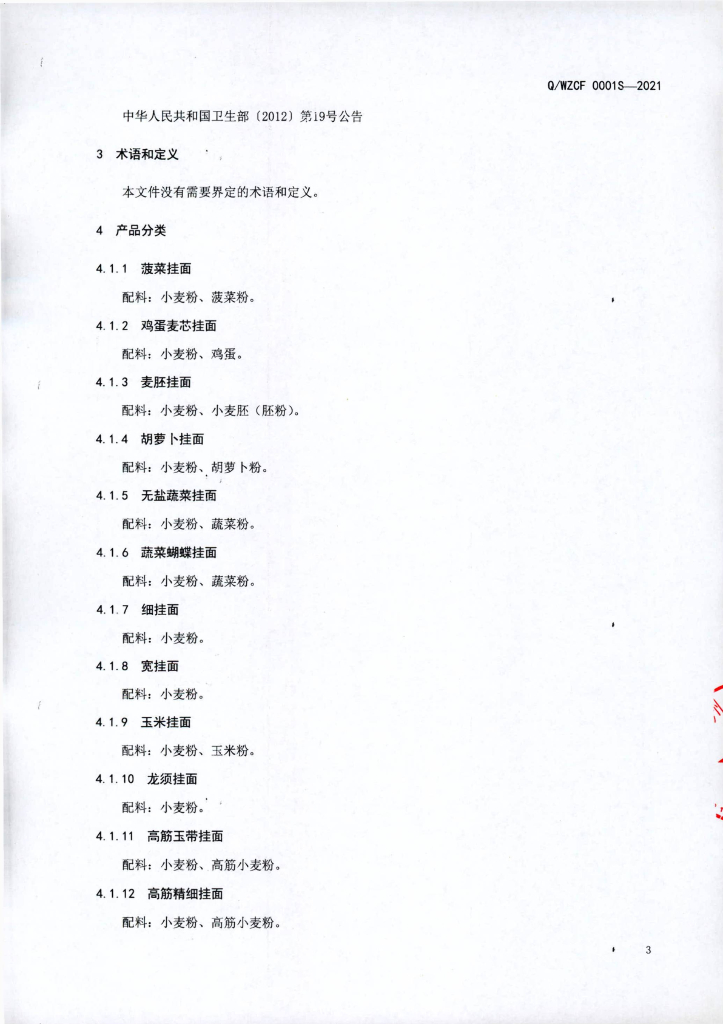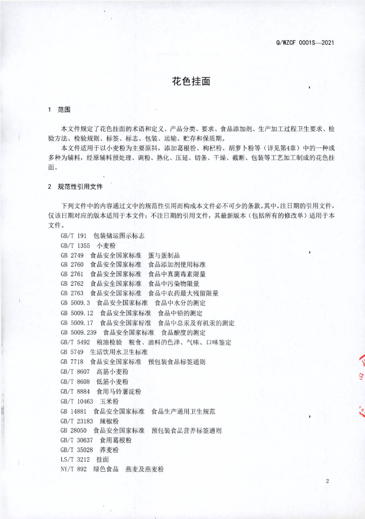 Q/WZCF 0001S-2021 花色挂面
