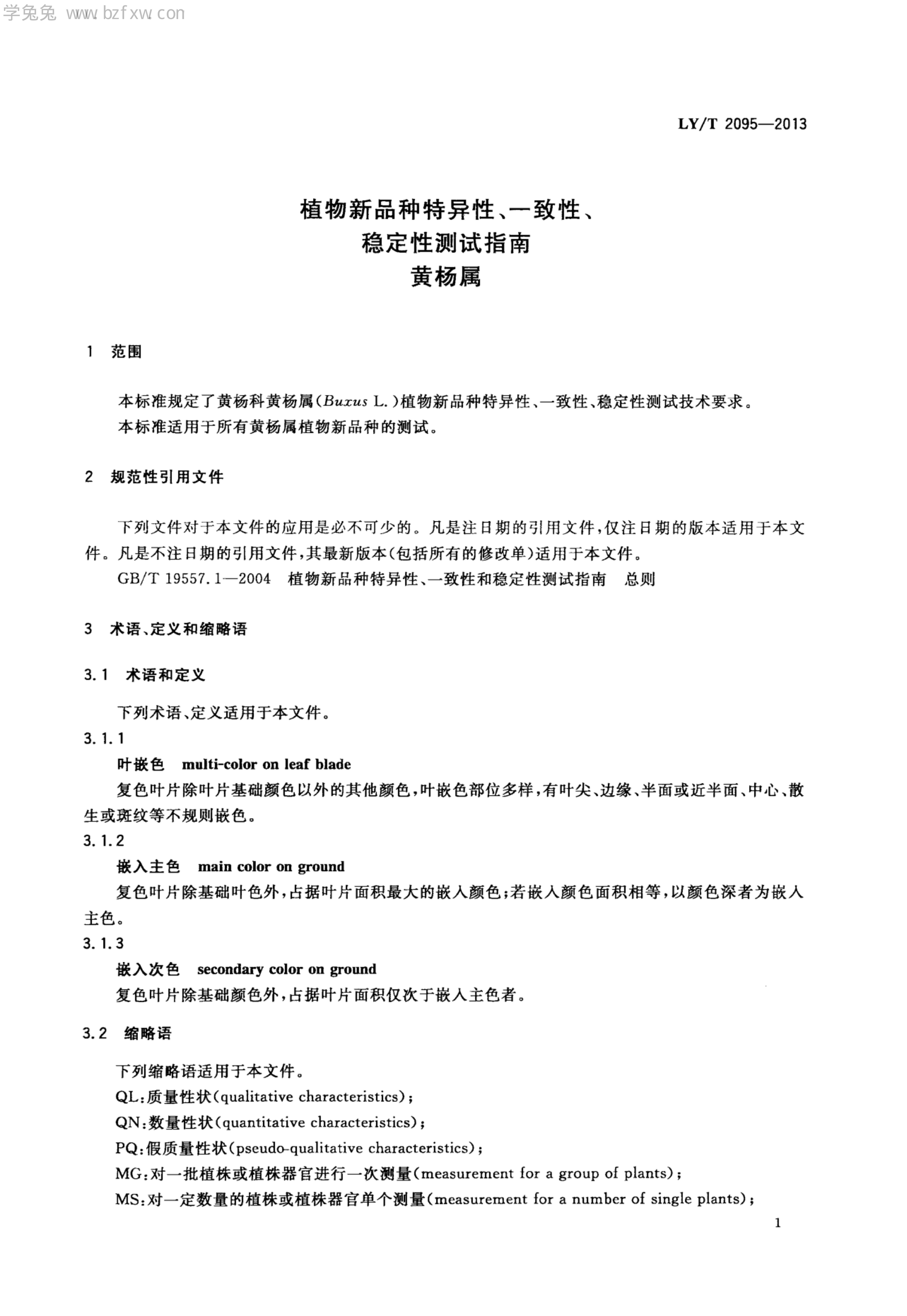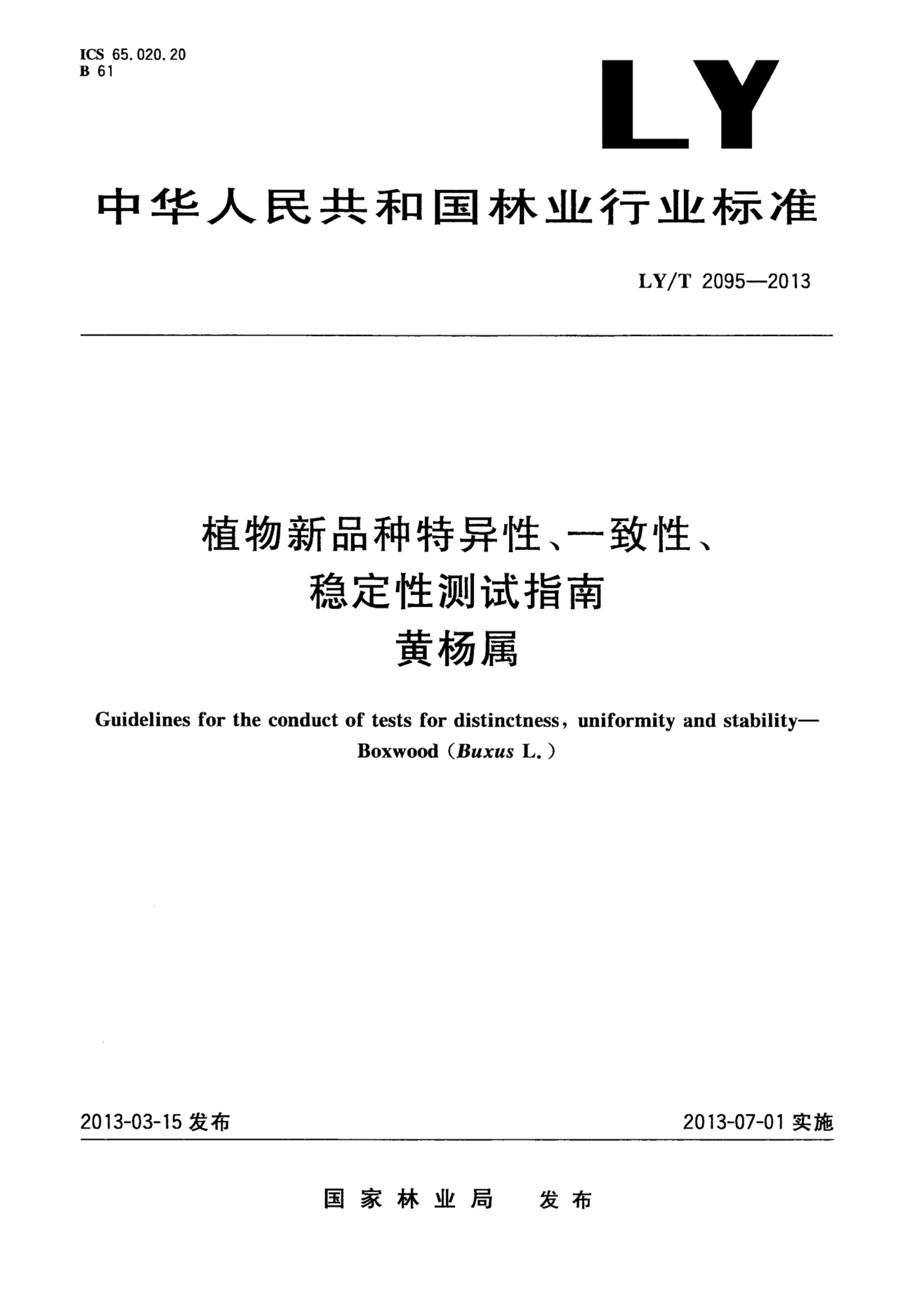 LY/T 2095-2013 植物新品种特异性、一致性、稳定性测试指南 黄杨属