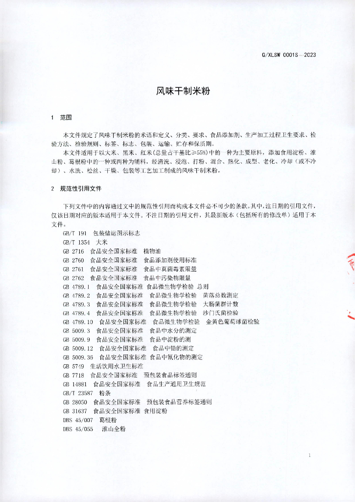 Q/XLSW 0001S-2023 风味干制米粉 广西南宁鑫浪生物保健食品有限公司