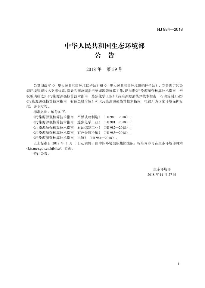 HJ 984-2018 污染源源强核算技术指南 电镀