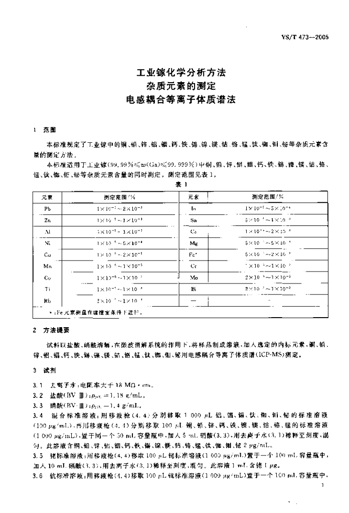 YS/T 473-2005 工业镓化学分析方法杂质元素的测定电感耦合等离子体质谱法