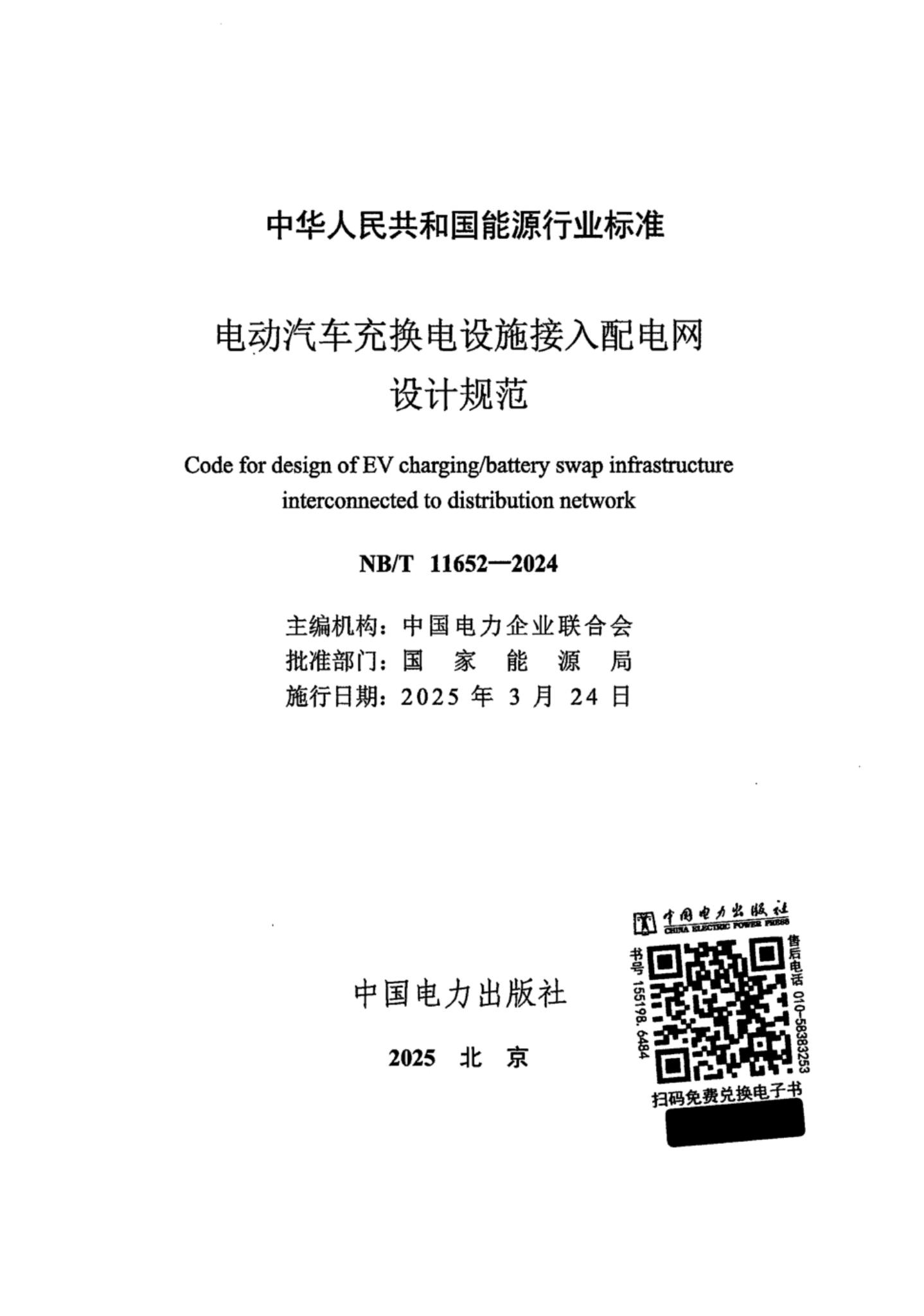 NB/T 11652-2024 电动汽车充换电设施接入配电网设计规范(附条文说明)