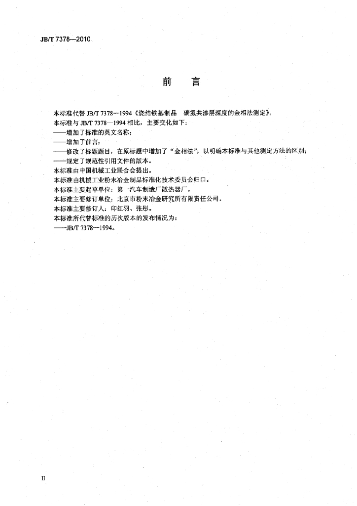 JB/T 7378-2010 烧结铁基制品 碳氮共渗层深度的金相法测定
