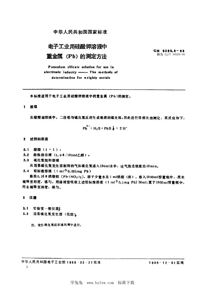 SJ/T 10929-1996 电子工业用硅酸钾溶液中重金属(Pb)的测定方法