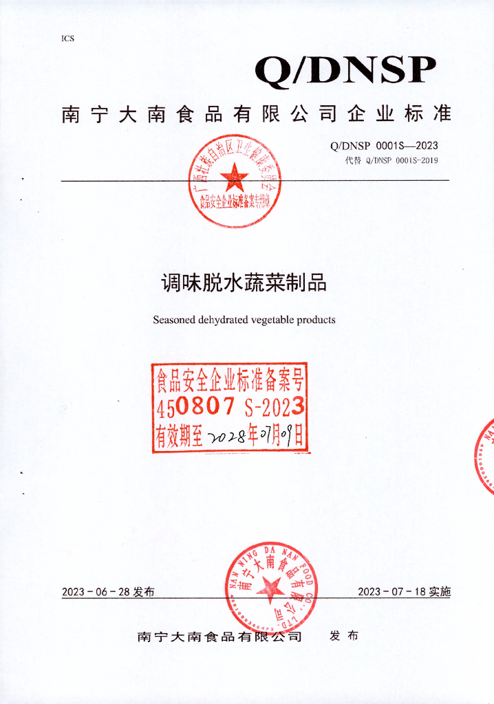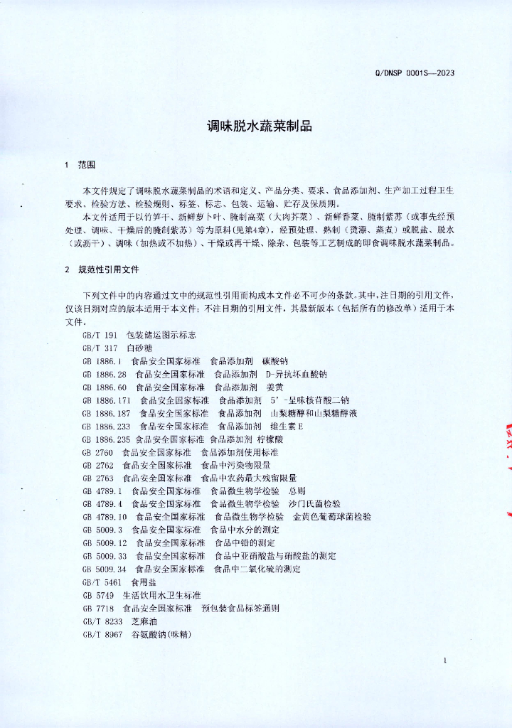Q/DNSP 0001S-2023 调味脱水蔬菜制品