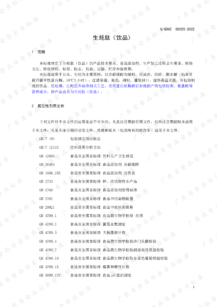 Q/GDHZ 0002S-2022 生蚝肽(饮品)