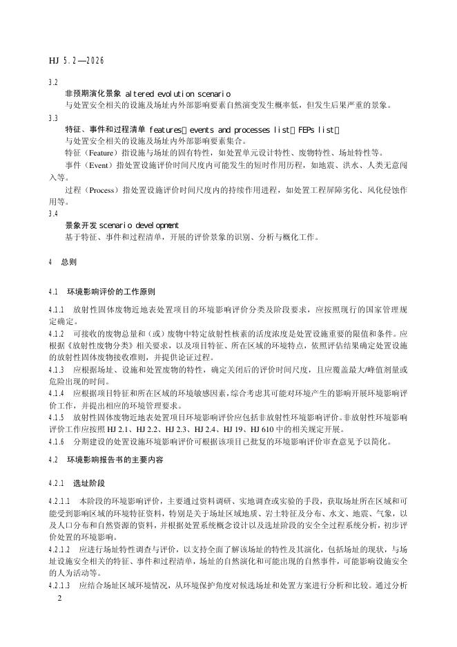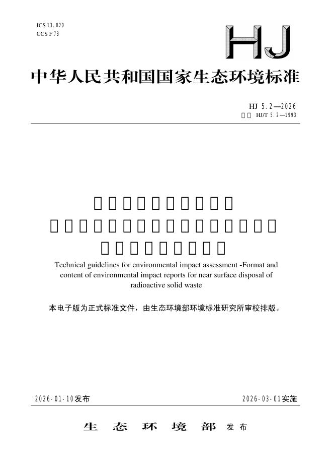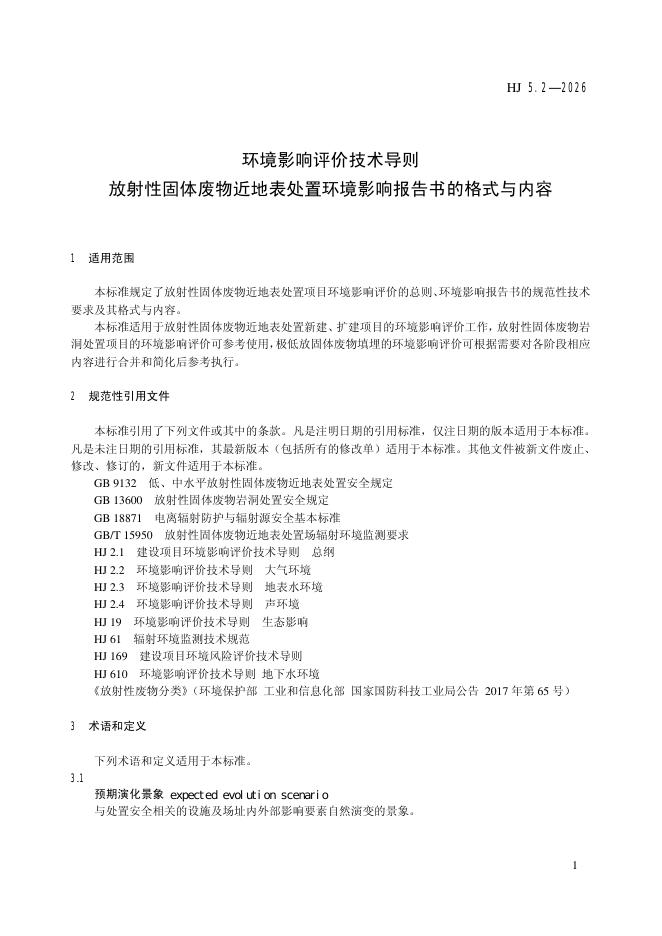 HJ 5.2-2026 环境影响评价技术导则 放射性固体废物近地表处置环境影响报告书的格式与内容