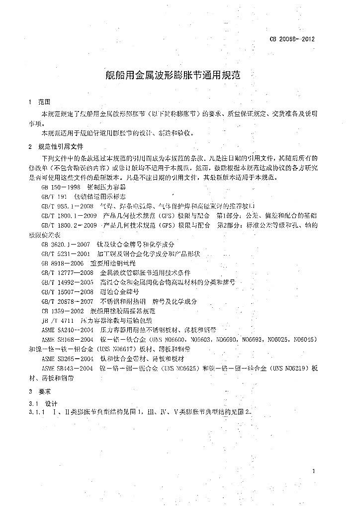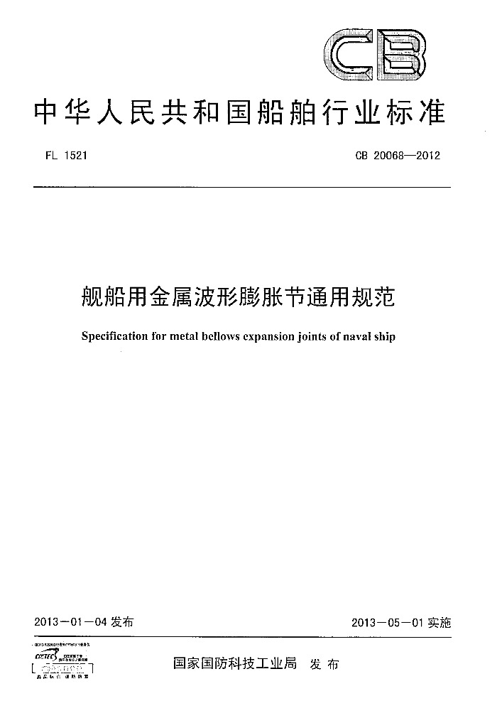 CB 20068-2012 舰船用金属波形膨胀节通用规范