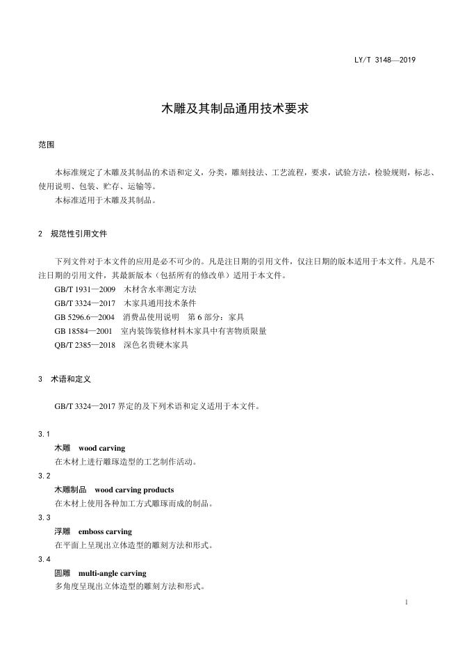 LY/T 3148-2019 木雕及其制品通用技术要求