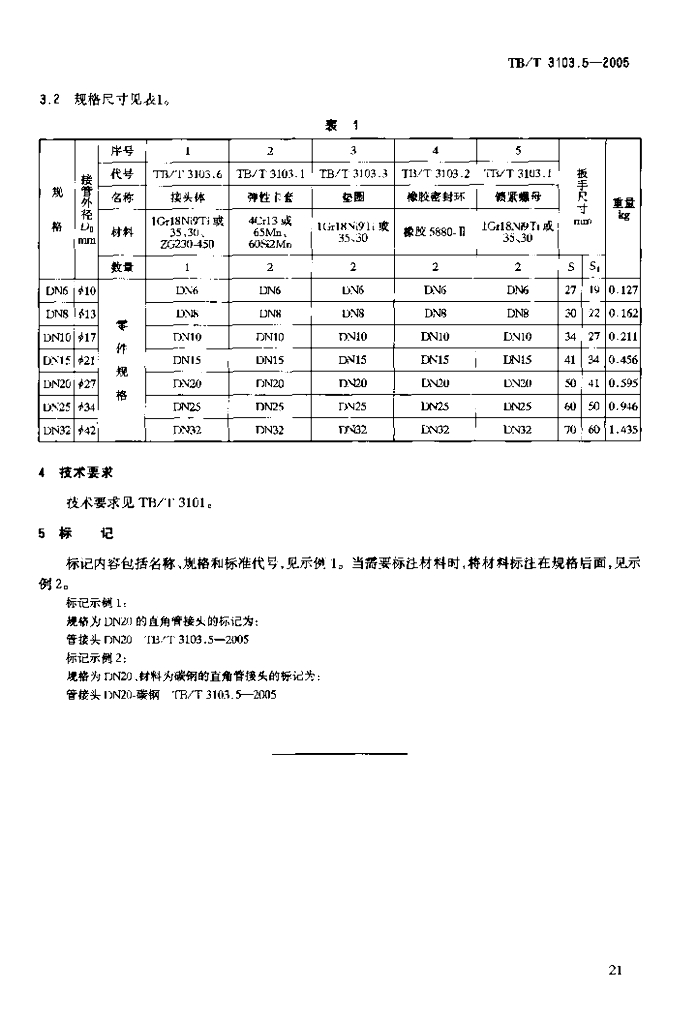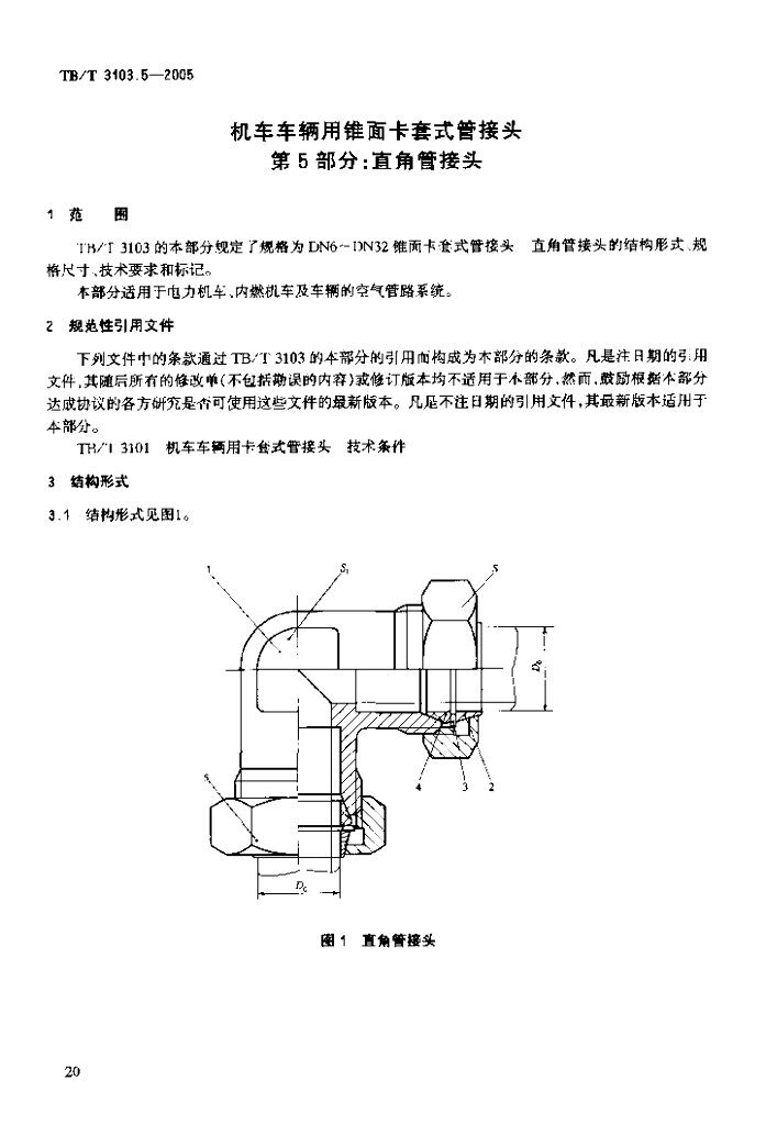 TB/T 3103.5-2005 机车车辆用锥面卡套式管接头 第5部分:直角管接头