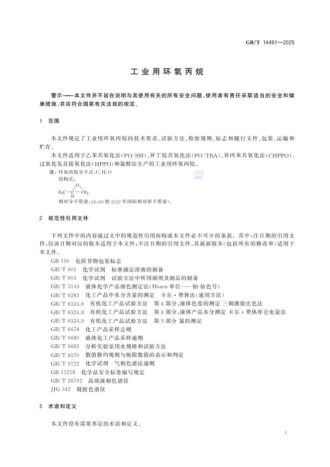 GB/T 14491-2025 工业用环氧丙烷