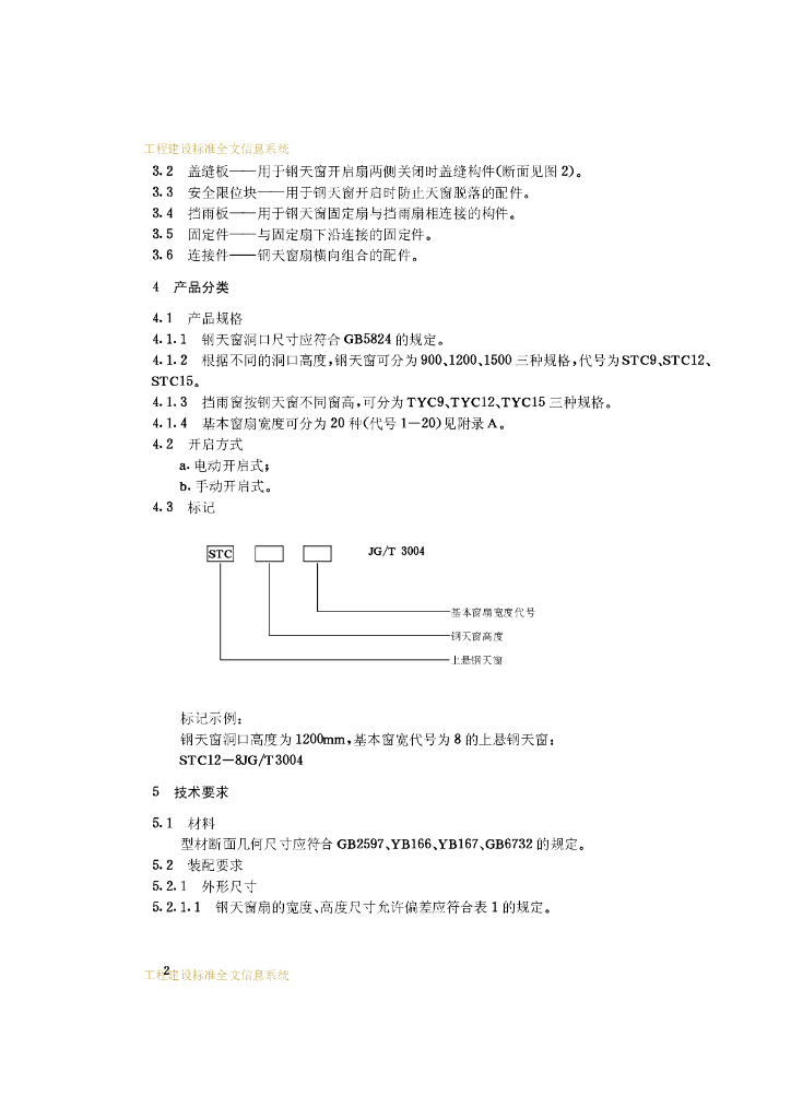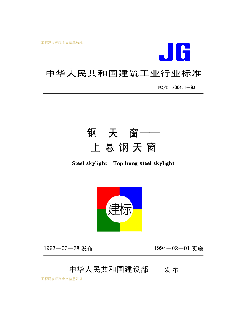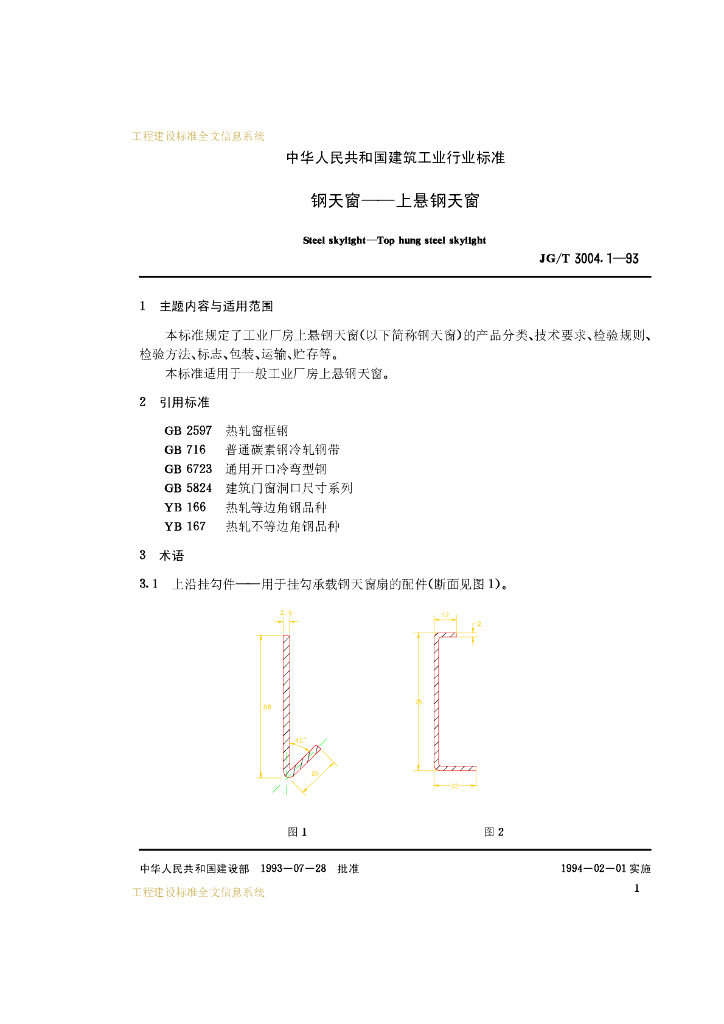 JG/T 3004.1-1993 钢天窗——上悬钢天窗