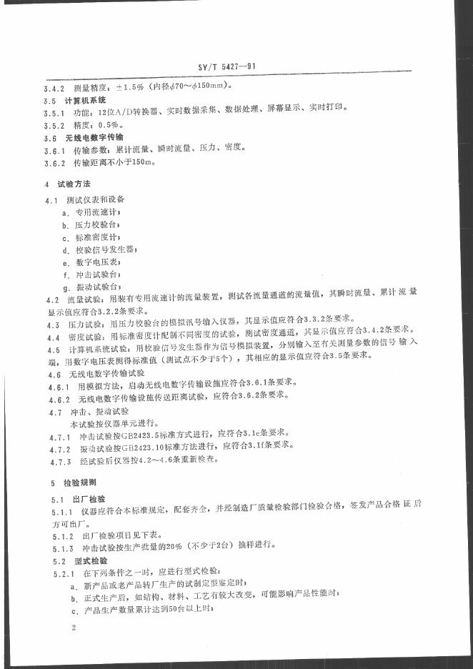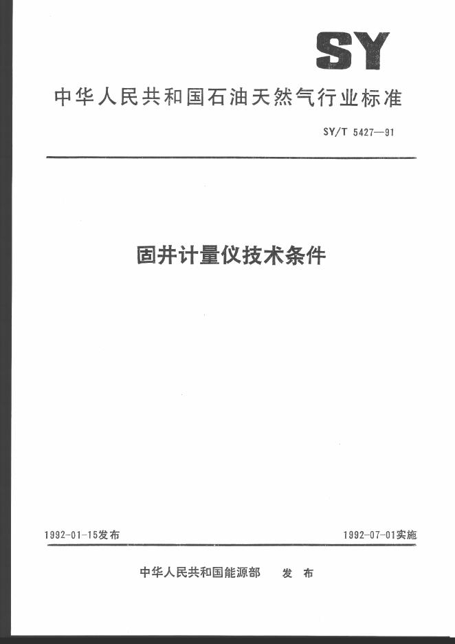 SY/T 5427-1991 固井计量仪技术条件