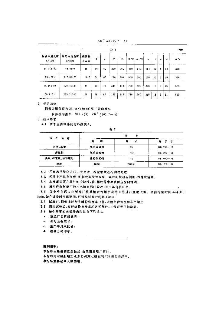 CB 3302.7-1987 双千斤索单吊杆装置 双并导向滑车