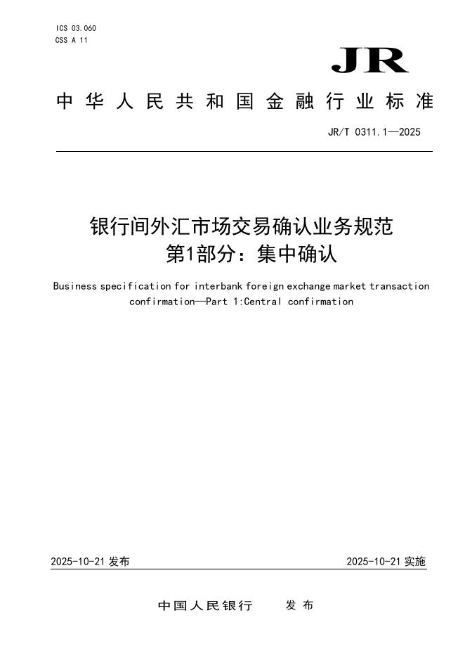 JR/T 0311.1-2025 银行间外汇市场交易确认业务规范 第1部分:集中确认