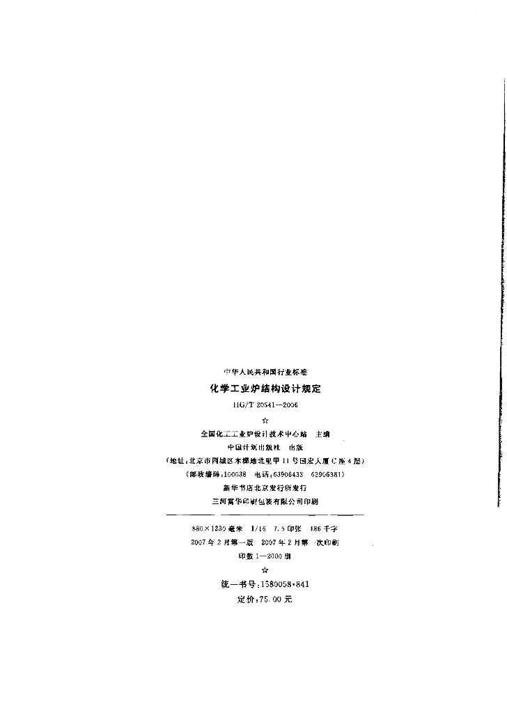 HG/T 20541-2006 化学工业炉结构设计规定